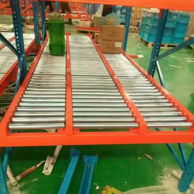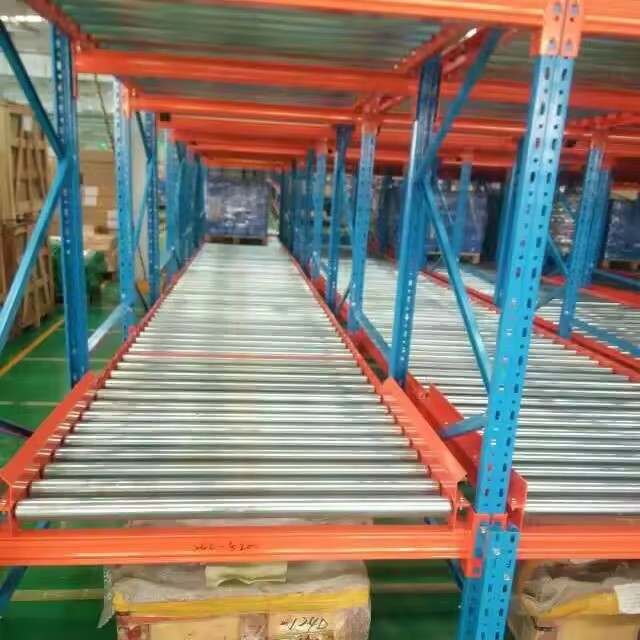 Travailler sur uneLe premier qui entre, le premier qui sort.Les palettes sont chargées sur des voies dédiées de rouleaux gravitationnels inclinés fixés à une pente fixe.Quand le fardeau sera retiré de la face de la cueillette,,la palette suivante se déplace en position, le stock de ravitaillement étant chargé à l'extrémité opposée (supérieure) de la voie.La rotation du stock est donc automatique avec un minimum de mouvements de chariot élévateur.Il est utilisé pour stocker une grande quantité de marchandises de la même espèce.Et l'utilisation complète de l'espace peut être faite.
